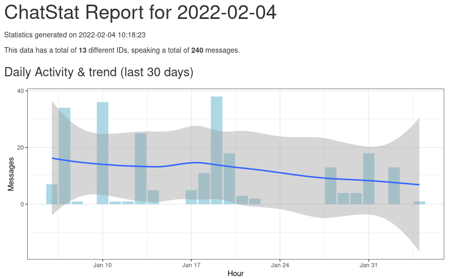 ChatStat is an R package for making reports on Matrix rooms.